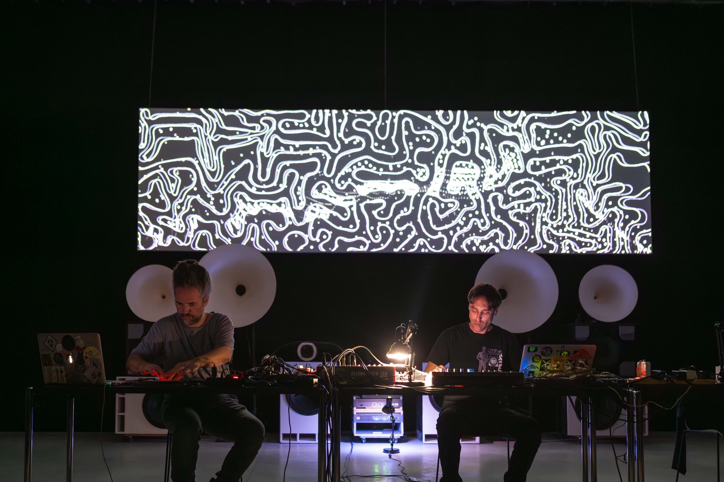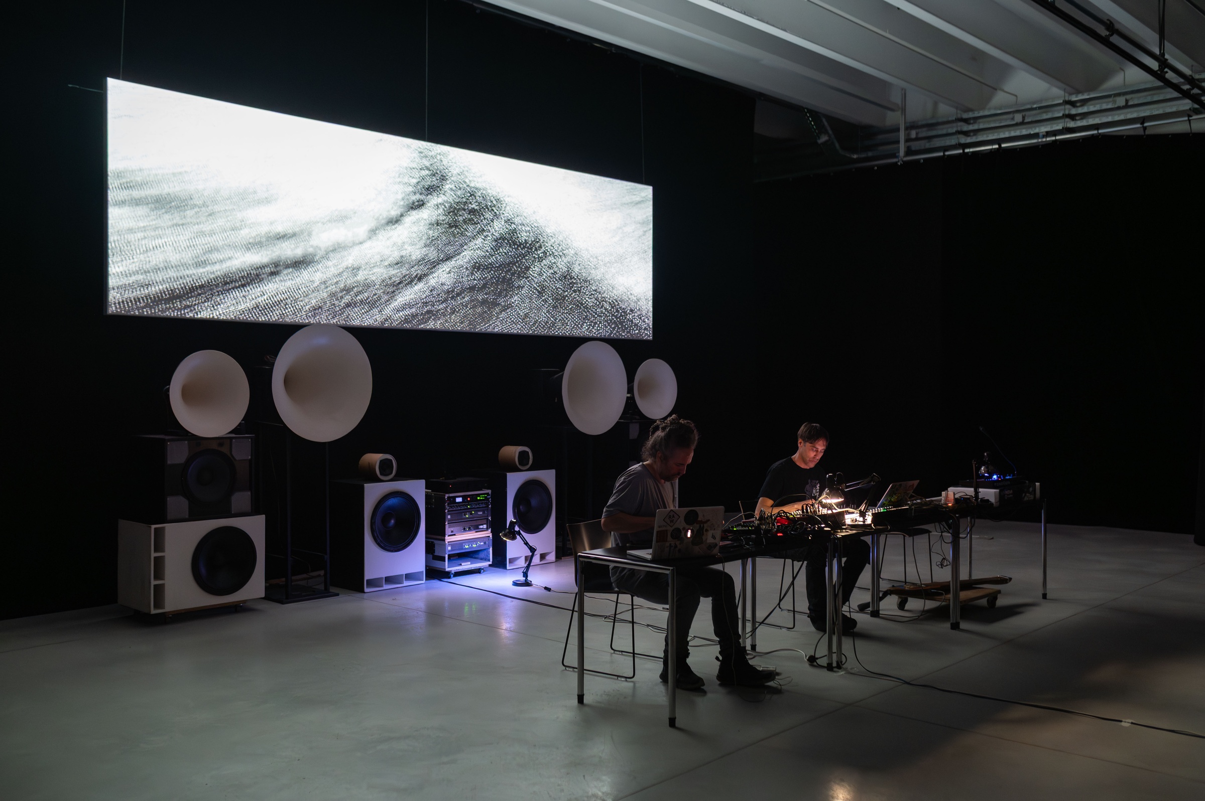 The collaboration between the three artists represents an encounter of distinct yet complementary approaches to audiovisual creation. Their artistic research unfolds at the intersection of sound, image, space, and technology, where the creative process itself becomes a tool for exploring the relationships between human and machine, control and unpredictability, physical reality and its digital reflections. In this joint project, their practices merge into a dynamic, fluid composition in which each element functions as a frequency within a broader spectrum of perception. Sound becomes light, space becomes an instrument, and technology transforms into a living structure. The result is an intense sensory experience that transcends the classical divide between the visual and the sonic, opening a field for new perceptions of time, movement, and awareness.