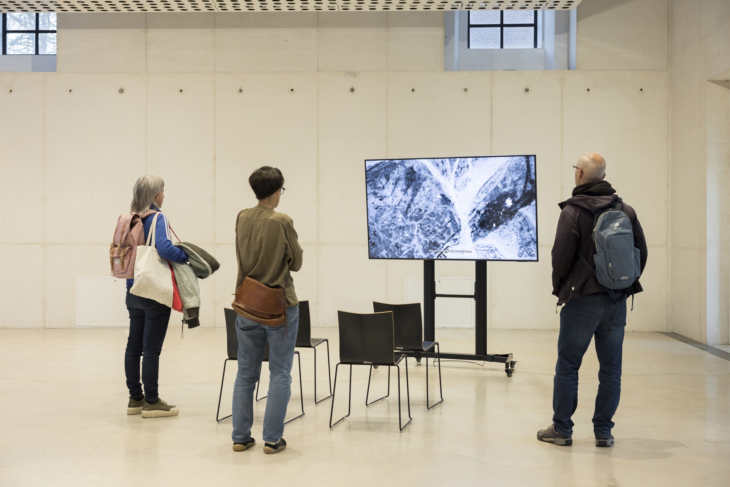 On view in the Parter Gallery are two films that demonstrate their approach to combining investigative methodologies with personal narratives — Return to Al-Ma’in and When It Stopped Being a War. The first documents the reconstruction of the Palestinian village of al-Ma’in, destroyed in 1948, based on the testimony of historian Salman Abu Sitta. The second presents the account of Dr. Ghassan Abu-Sitteh on the attack on al-Ahli hospital in Gaza on October 17, 2023. Seen together, the testimonies of uncle and nephew, Salman and Ghassan, shed light on the ongoing, intergenerational Nakba and the historical continuity of displacement and violence. The videos are accompanied by the interactive platform A Cartography of Genocide.