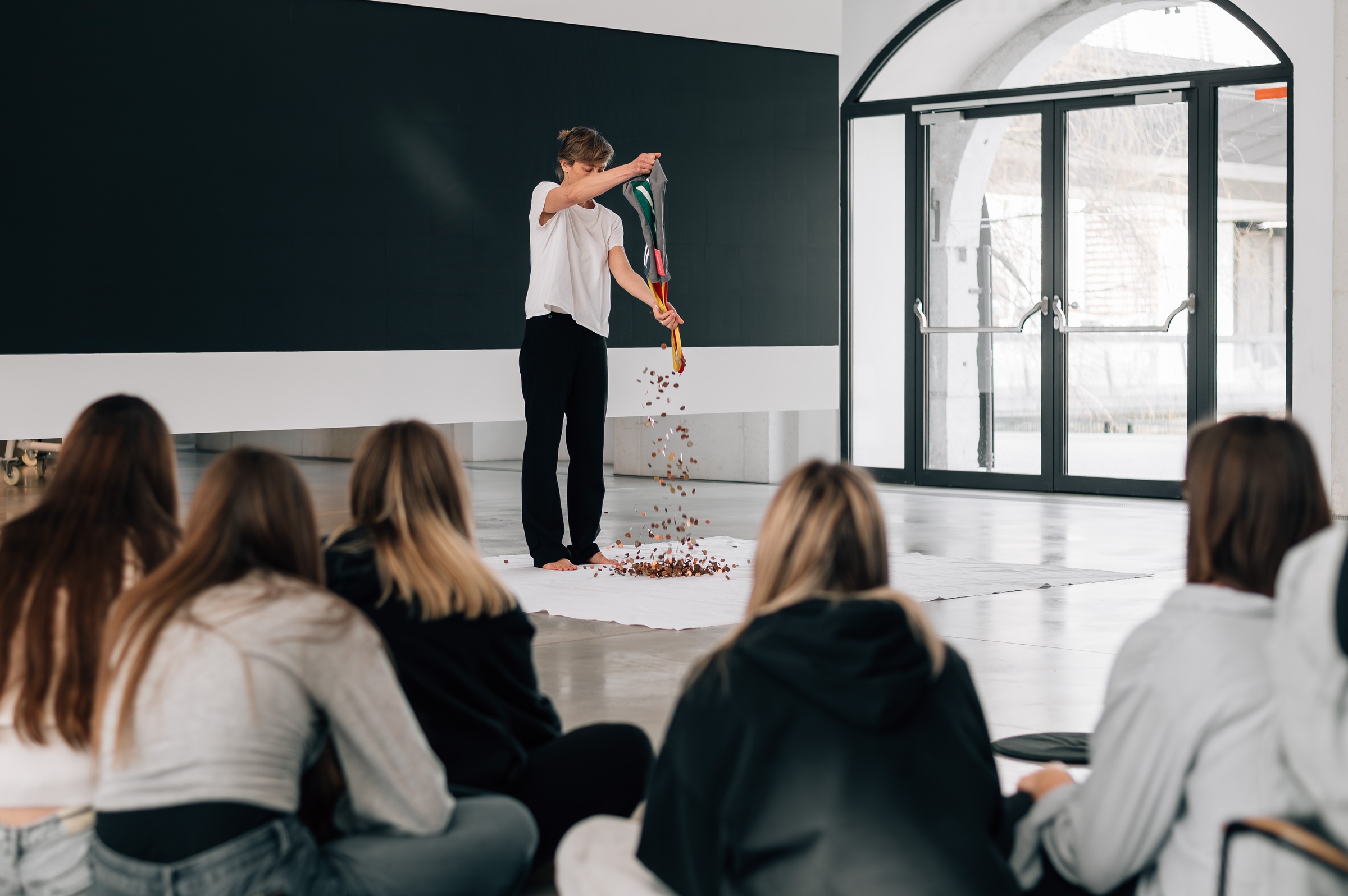 Performativno predavanje obiskovalcem približa performativno umetnost, jim pojasni njene začetke in predstavi delo Marine Abramović in Ulaya, dveh ključnih akterjev tega področja.